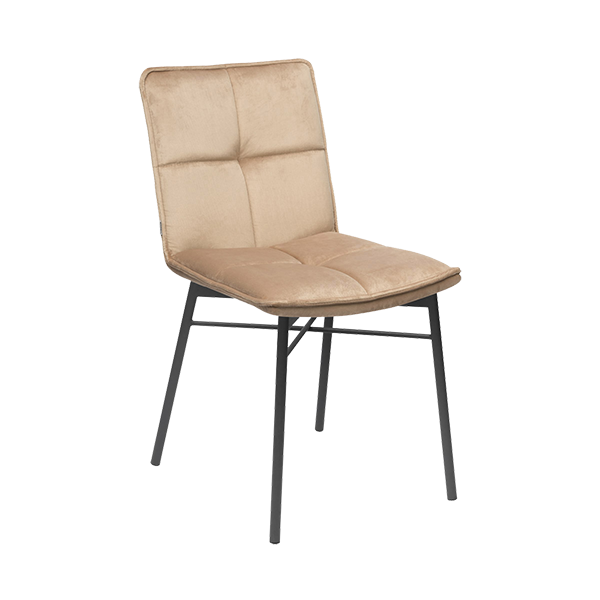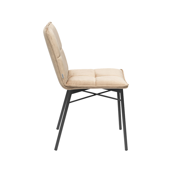 Каркас стільця виконаний з міцного металу, оббивка — на фанерній основі з еластичним пінополіуретаном, що гарантує стійкість і комфорт. Металеві ніжки — суцільнозварна конструкція з матовим порошковим фарбуванням, доступні в кількох кольорах — чорний, сірий, білий, мокко і золотий